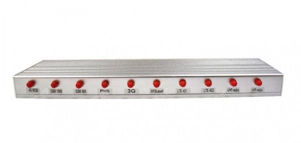 | Прибор подавляет | Цифровые сигналы: VHF; UHF; GSM900; GSM 1800; GSM 1900; 3G; 4G LTE; 4G-1; 4G-2; WiFi, Bluetooth |